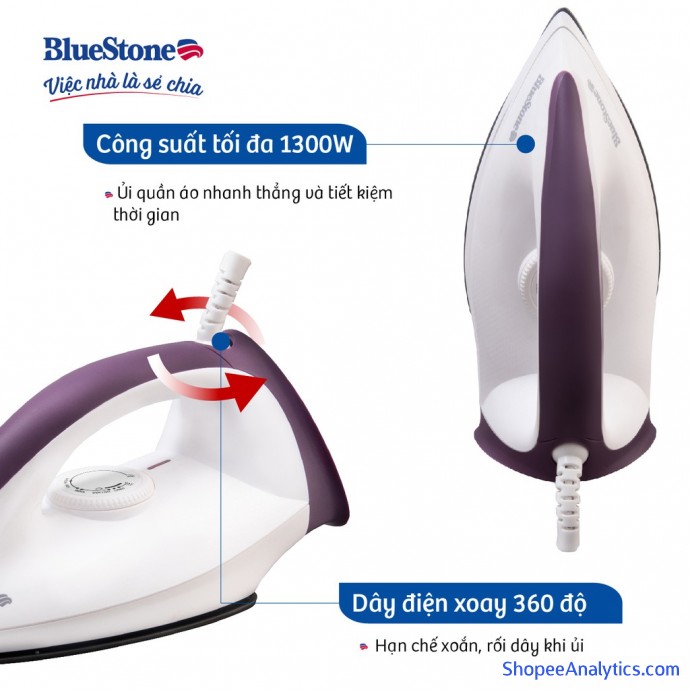 Bàn ủi khô Bluestone DIB-3726 - 1300W Thiết kế gọn nhẹ, hiện đại giúp bạn tiết kiệm không gian nhà bạn và thời gian là ủi quần áo.