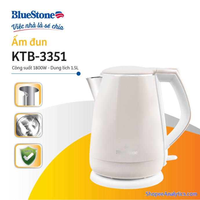 Tổng thể Ấm Đun Siêu Tốc 2 Lớp Bluestone KTB-3351 - 1.5L được đánh giá trung bình 4.93/5 điểm dựa vào 218 đánh giá qua 517 lượt mua hàng (Cập nhập ngày 18/10/2021).
