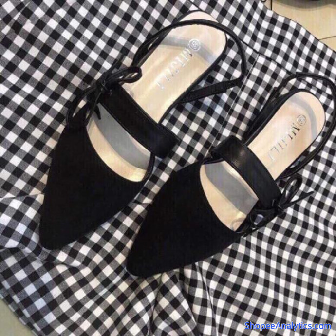 giày bệt kẻ cảo, đen mũi nhọn thắt nơ