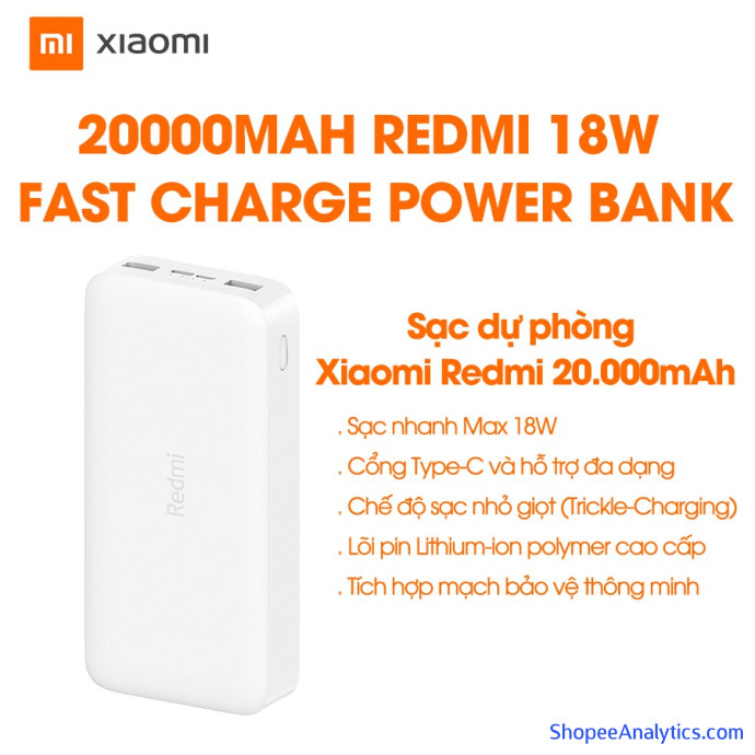 Tổng thể Pin Sạc Dự Phòng Xiaomi Redmi Power Bank 20000 mAh 18W - Chính hãng- BH 6 tháng được đánh giá trung bình 4.92/5 điểm dựa vào 1,153 đánh giá qua 2,602 lượt mua hàng (Cập nhập ngày 26/08/2021).