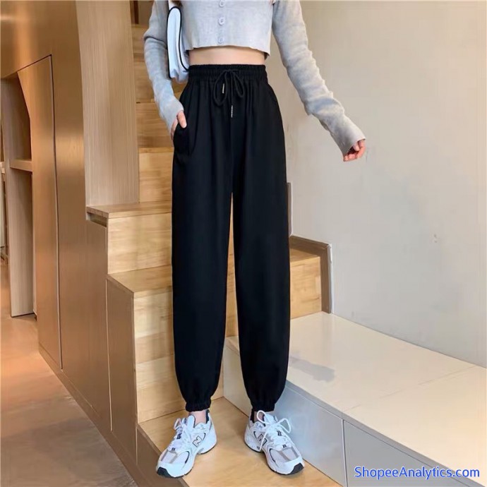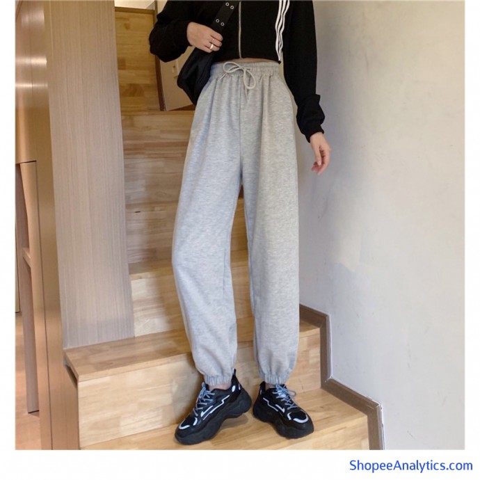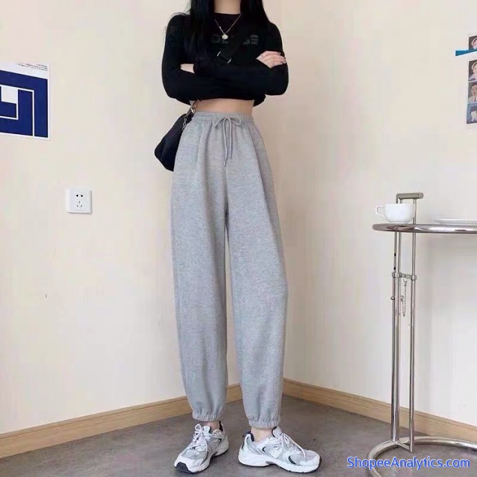 Thông tin sản phẩm Quần jogger nữ dây rút ống rộng cá tính hai màu đen xám tập gym phong cách thể thao ulzzang chất nỉ da cá KOZODA
