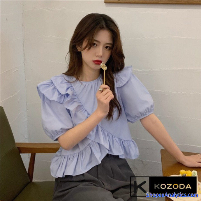 🌈🌈 Kích thước Áo babydoll kiểu cộc tay bèo gấu hai màu xanh, trắng vintage phong cách Hàn Quốc Kozoda