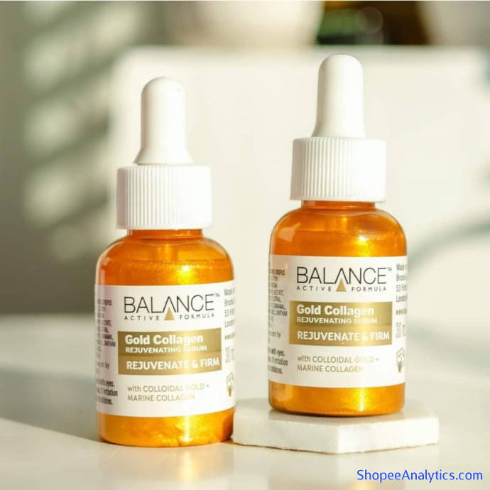 - Tinh Chất Chống Lão Hóa Balance Active Formula Gold Collagen Rejuvenating Serum chứa Colloidal Gold với màu nhũ vàng giúp tạo hiệu ứng căng bóng cho da và khiến da trở nên đều màu.