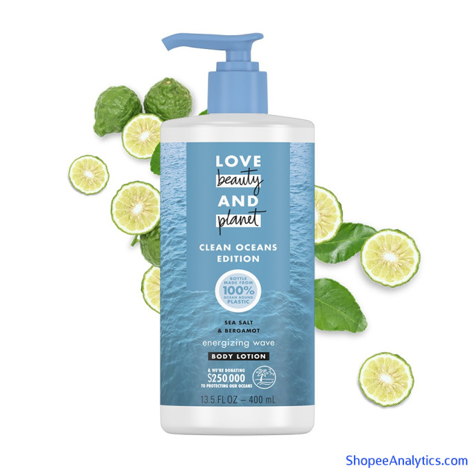 - Sữa Dưỡng Thể Love Beauty And Planet Energizing Wave Bừng Sức Sống 400ml với đặc tính cân bằng và giàu khoáng chất của muối biển cùng với hương thơm cam quýt của cam Bergamot, sẽ mang lại cho bạn và làn da của bạn cảm giác sảng khoái và tràn đầy sinh lực.