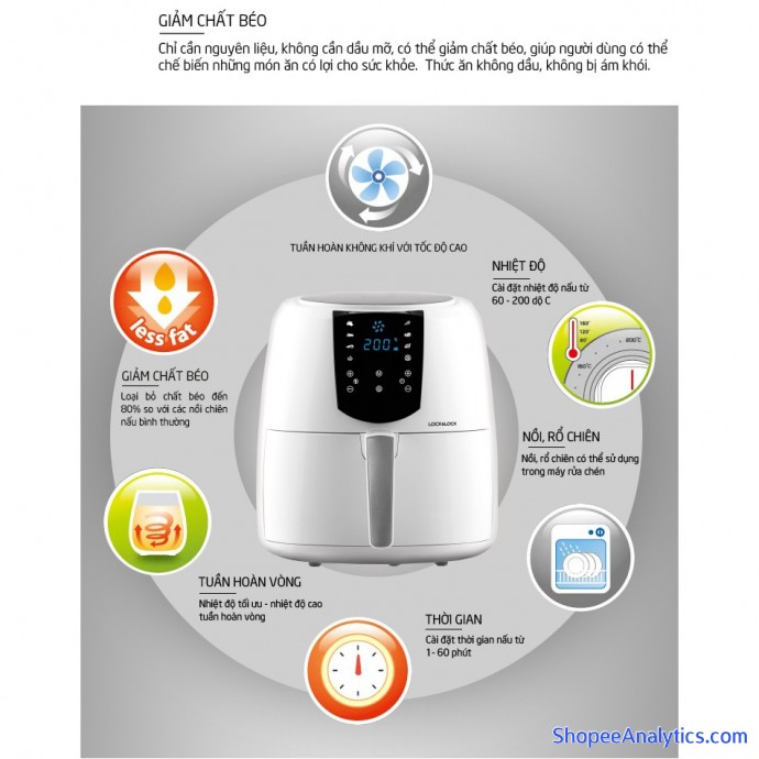 Nồi Chiên Không Dầu Lock&Lock EJF357BLK (5.2 Lít) chỉ cần nguyên liệu, không cần dầu mỡ, có thể giảm chất béo, giúp người dùng có thể chế biến những món ăn có lợi cho sức khỏe.