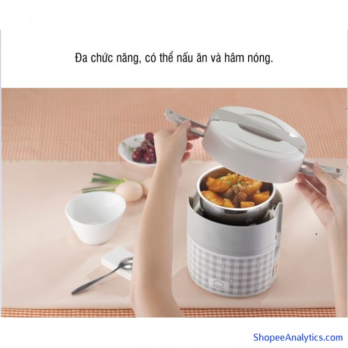 Hộp cơm có ba tầng. Bạn có thể bảo quản cơm, thịt, súp riêng biệt để đáp ứng nhu cầu bữa ăn của bạn.
