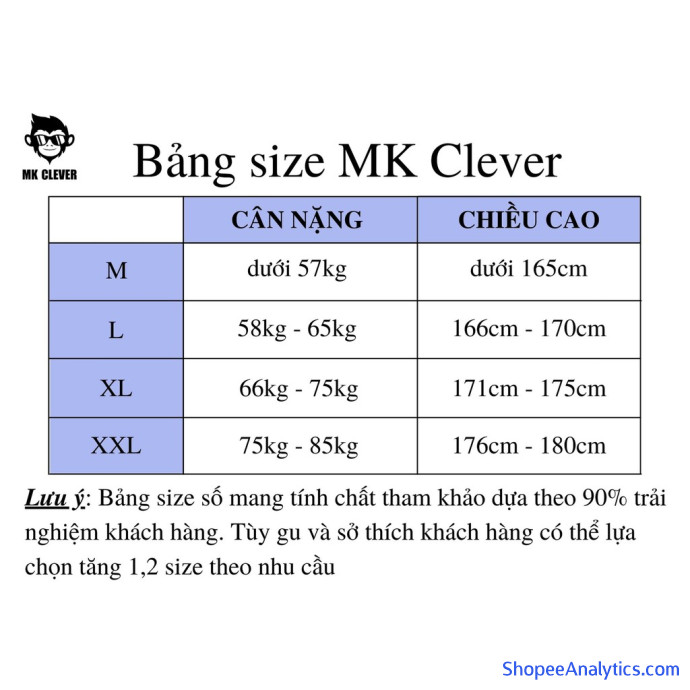 + Size XXL: 1m76-76kg đến 1m80-85kg.