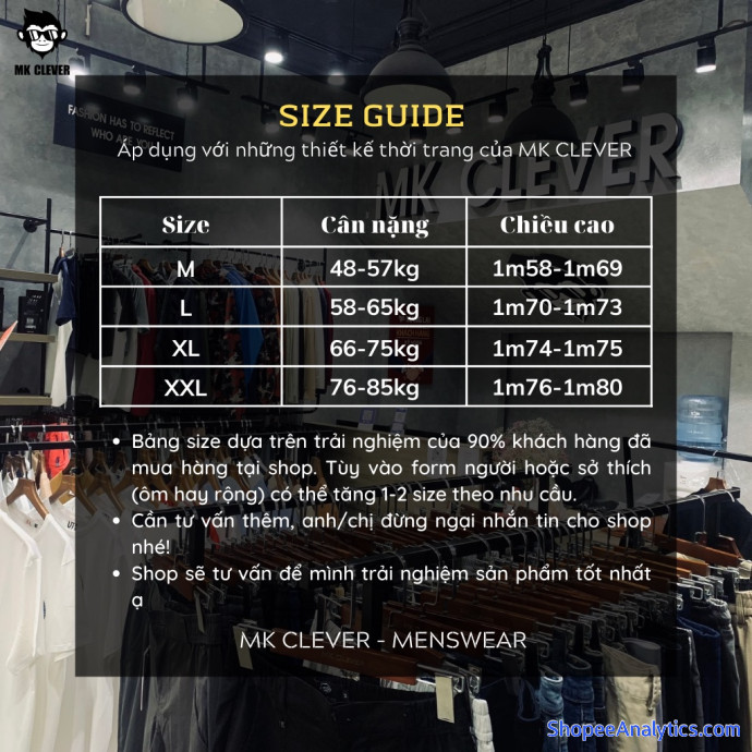 ⏩ Cách chọn size: Shop có bảng size mẫu ( như ảnh )