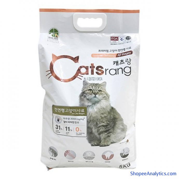 Catsrang là một thương hiệu nổi tiếng có xuất xứ từ Hàn Quốc, và là sản phẩm bán chạy nhất tại thị trường Việt Nam, được chứng nhận HACCP và ISO 9001 của Bộ Nông Nghiệp và Thủy Sản Hàn Quốc