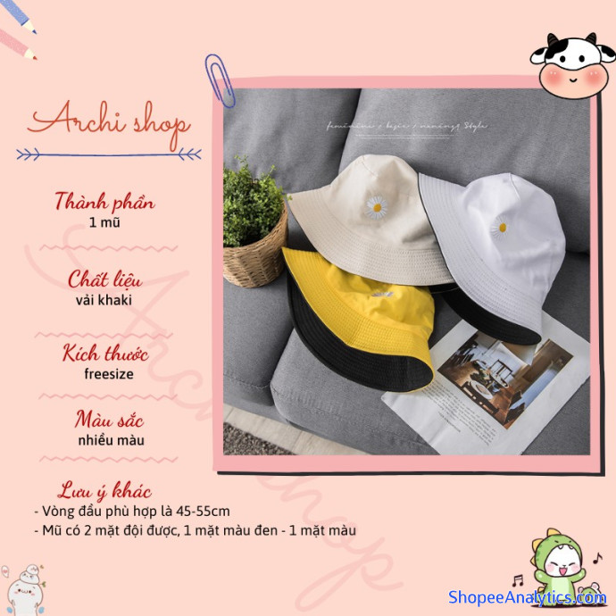 Mũ bucket thêu hoa cúc GD 2 mặt