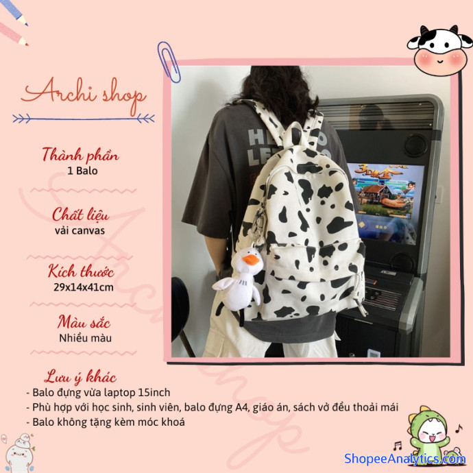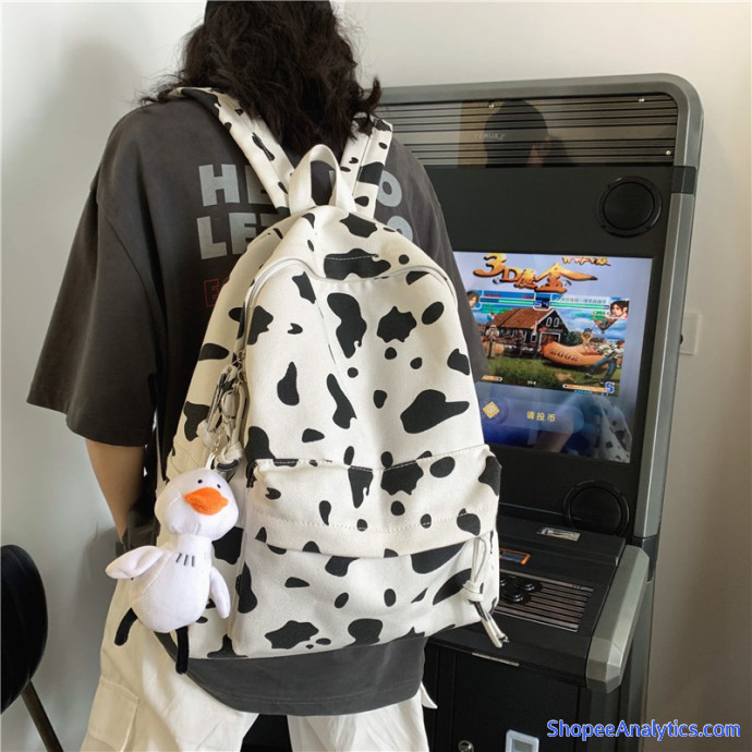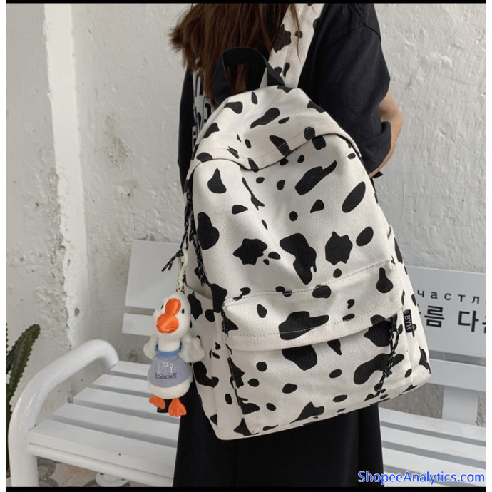 Balo ulzzang cao cấp họa tiết bò sữa (Không tặng kèm gấu)