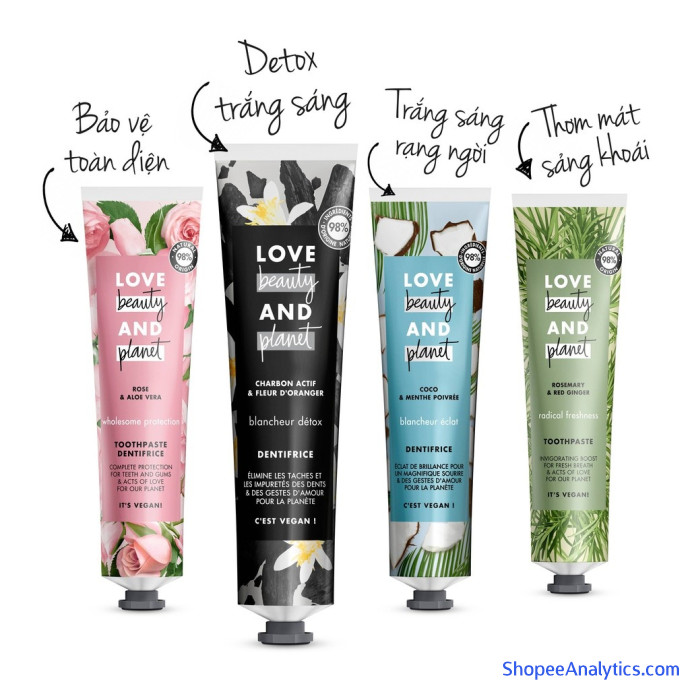 1.Kem đánh răng Love Beauty And Planet Detox Than hoạt tính trắng sáng