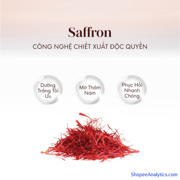 Nhụy hoa nghệ tây (350.000ppm): Nuôi dưỡng làn da sáng mịn từ sâu bên trong;