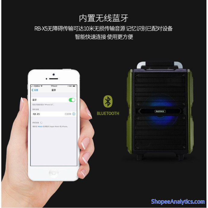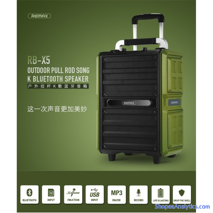 Loa kéo Bluetooth Karaoke cao cấp Remax RB-X5 công suất 50W (Đen) - Kèm 2 micro không dây