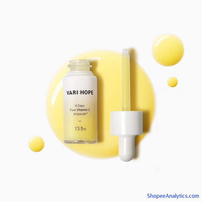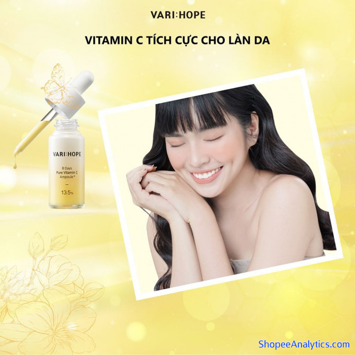Tinh chất dưỡng trắng da trong 8 ngày của Vari:Hope 8 Days Pure Vitamin C Ampoule là dòng sản phẩm đầu tiên trên thế giới giữ được vitamin C nguyên chất đến 13,5%. Không chỉ đảm bảo tính năng của sản phẩm mà còn bảo quản ổn định hơn 2 năm mà không sử dụng thành phần gây hại da.