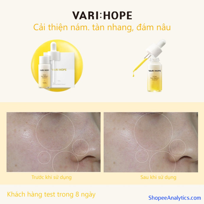 Vari:hope 8 Days Pure Vitamin C Ampoule - Tinh chất Vitamin C hỗ trợ trị nám - dưỡng trắng da trong 8 ngày