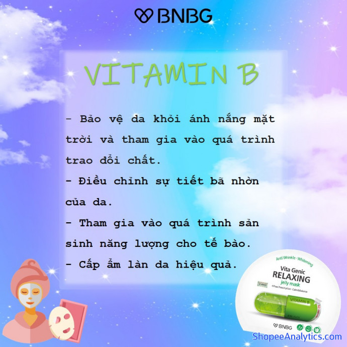 Mặt nạ BNBG Vita Genic hay còn được gọi là mặt nạ thuốc, đây là sản phẩm dưỡng ẩm, cấp nước và chuyên sâu nhiều mục đích khác với 4 dòng chính, là: Lifting (màu đỏ), Whitening (màu vàng), Relaxing (xanh lá) và Hydrating (xanh dương). Ưu điểm lớn nhất của em mặt nạ Hàn Quốc này chính là nhờ vào lớp cotton siêu mềm mại, có thể ôm sát gương mặt tạo cơ hội để các dưỡng chất thấm sâu vào bề mặt da nhanh và dễ dàng hơn.