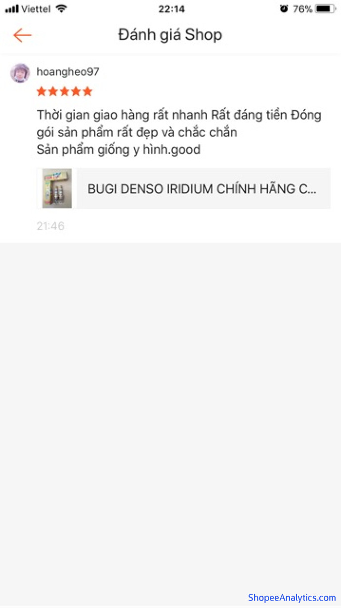 Tổng thể BUGI DENSO IRIDIUM CHÍNH HÃNG CÁC MÃ IU22, IU24, IU27, IUF22 GẮN CÁC LOẠI XE THÔNG DỤNG được đánh giá trung bình 4.82/5 điểm dựa vào 442 đánh giá qua 1,027 lượt mua hàng (Cập nhập ngày 17/06/2021).