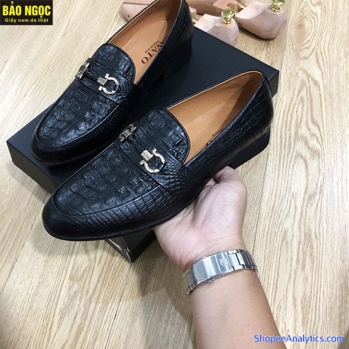 - Chất liệu giày lười nam : da bò 100%, dập vân cá sấu với băng xích sang chảnh.