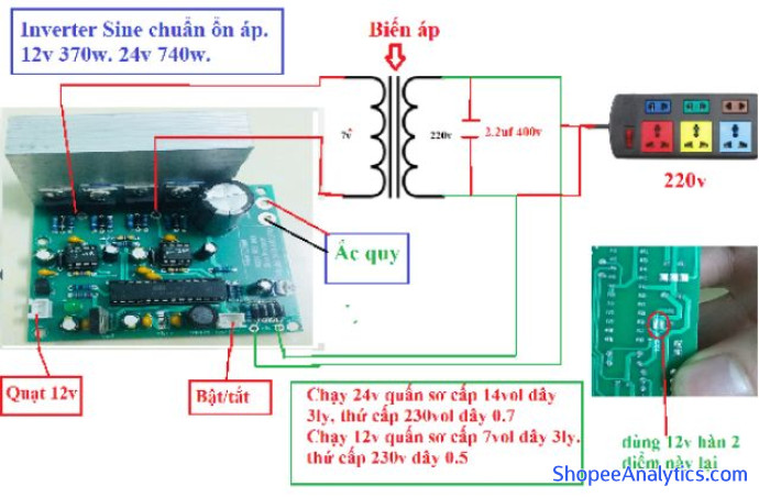 Inverter sine chuẩn ổn áp 300W liên tục ở 12v. 600w liên tục ở 24v.