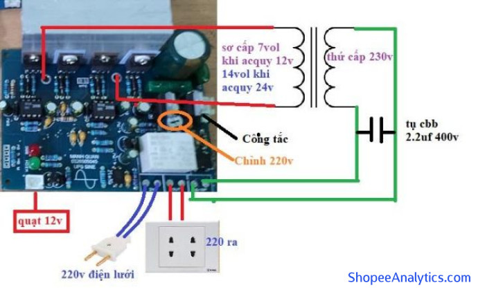 CHÚ Ý điện áp 220v. Không sờ tay vào ngõ vào ra 220v!!!!