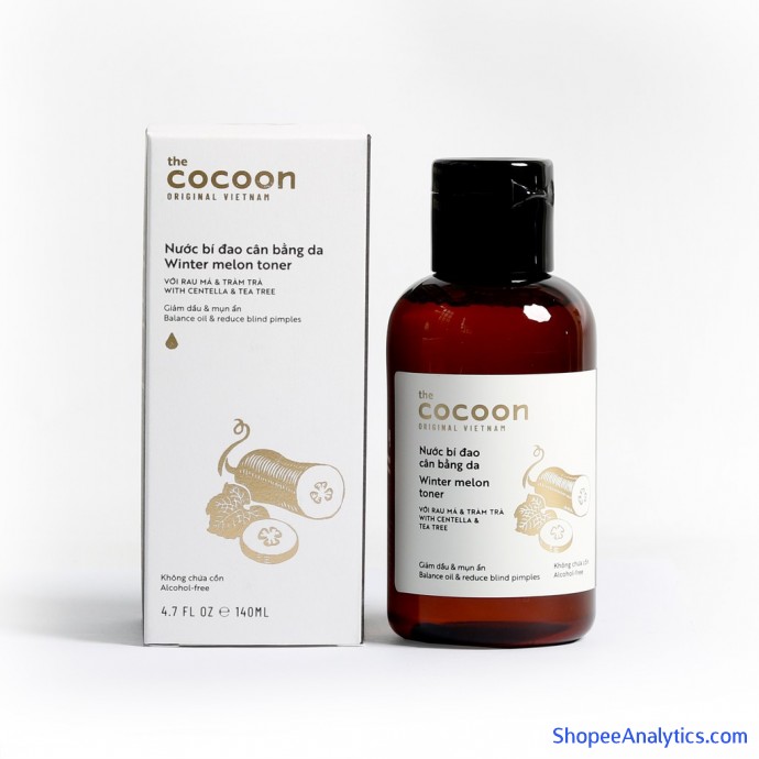 - Nước cân bằng da Cocoon chứa các thành phần tự nhiên như bí đao, rau má và tràm trà.