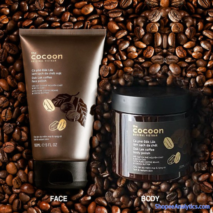 Bộ cà phê Đắk Lắk làm sạch da chết cocoon: da mặt 150ml + cơ thể 200ml