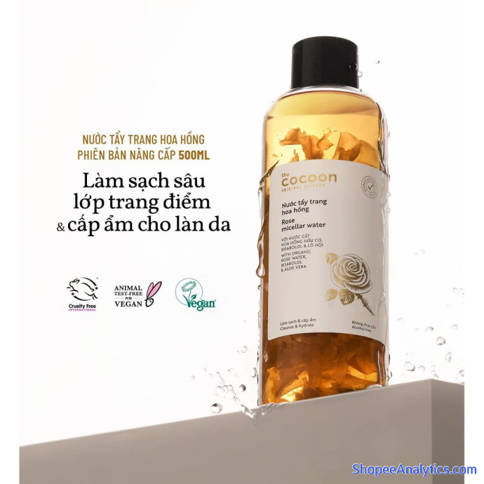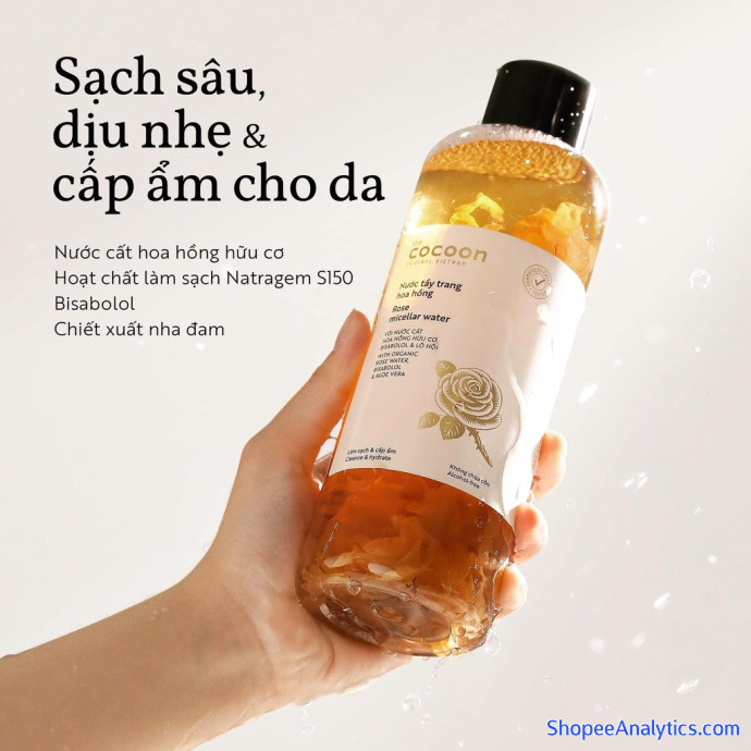 Nước tẩy trang hoa hồng cocoon 500ml (rose micellar water) Với nước cất hoa hồng hữu cơ tinh khiết kết hợp với công nghệ Micellar, nước tẩy trang hoa hồng giúp làm sạch sâu lớp trang điểm, bụi bẩn, cấp ẩm và làm dịu, mang lại làn da sạch và mịn màng.