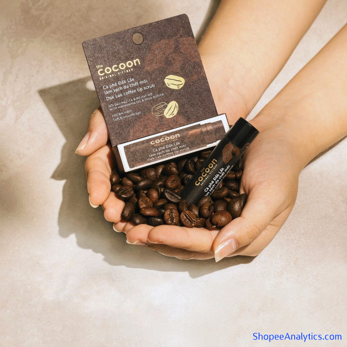 Cà phê đắk lắk làm sạch da chết môi cocoon. những hạt cà phê li ti được rang xay bằng tay hòa quyện vào dầu mắc-ca và bơ hạt mỡ, sẽ nhẹ nhàng làm bong những tế bào da chết ở môi, đem lại làn môi mềm và mịn màng.