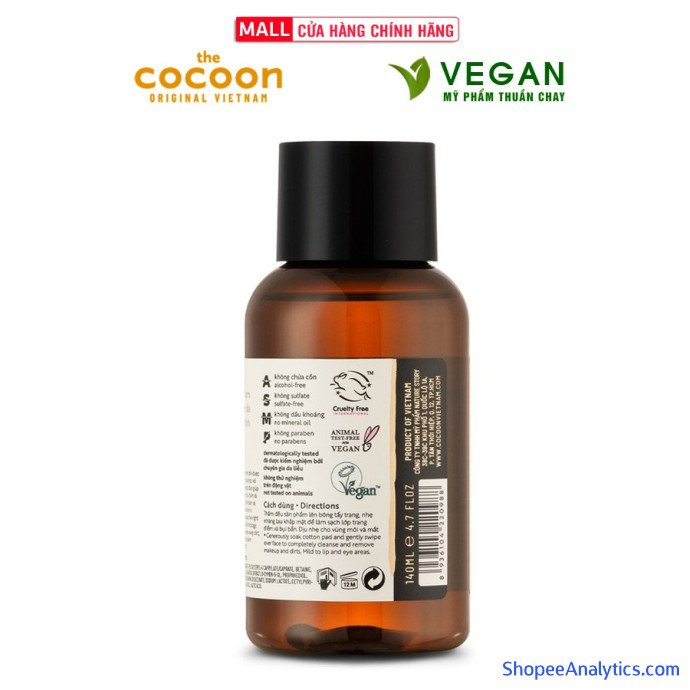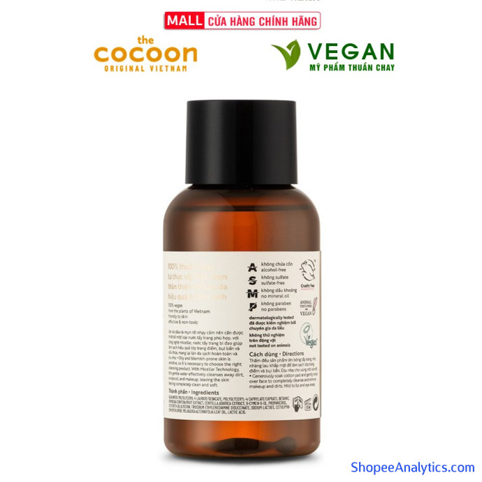 Thành phần đầy đủ nước tẩy trang bí đao cocoon 140ml thuần chay