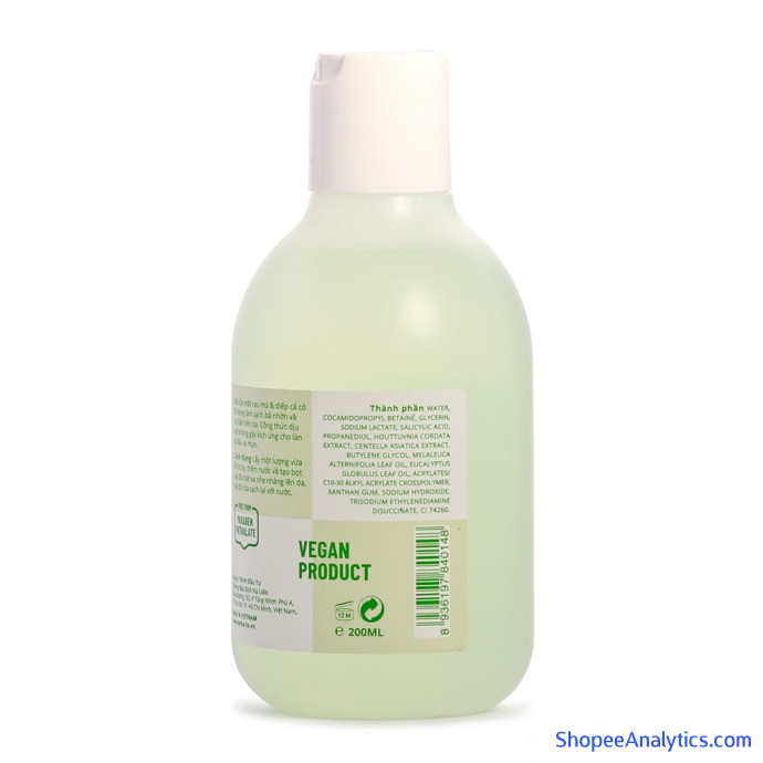 Thành phần đầy đủ sữa rửa mặt rau má & diếp cá