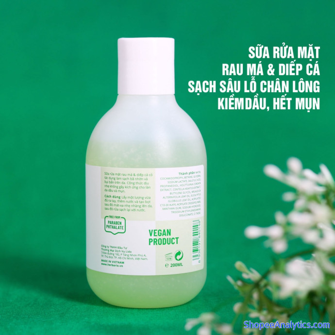 Tổng thể Sữa rửa mặt Rau má & Diếp cá herbario 200ml sạch mụn thuần chay được đánh giá trung bình 4.95/5 điểm dựa vào 608 đánh giá qua 1,242 lượt mua hàng (Cập nhập ngày 17/10/2021).