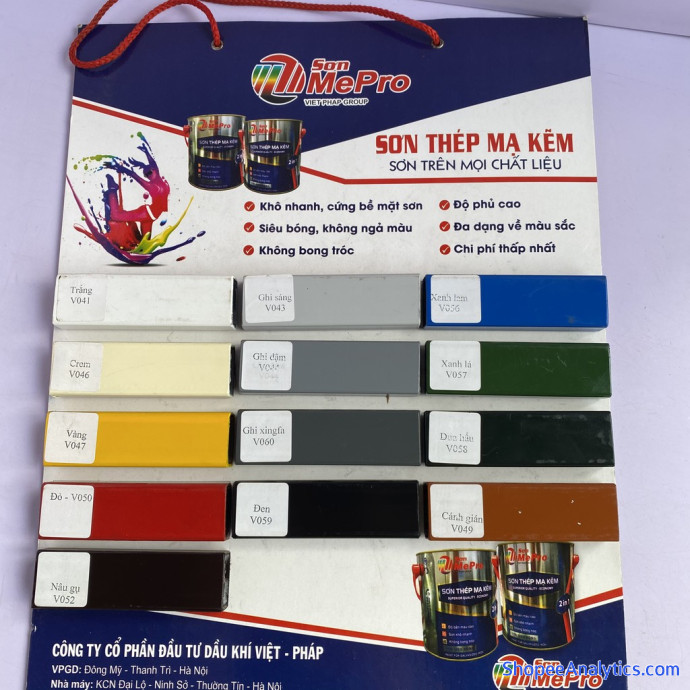 - Sơn thép mạ kẽm Mepro được sản xuất theo công nghệ Pháp. Sản phẩm là sự tổng hợp của nhựa Acrylic cao cấp với chất tạo màu, giúp bề mặt sơn phủ bền đẹp với nhiều màu sắc đa dạng.