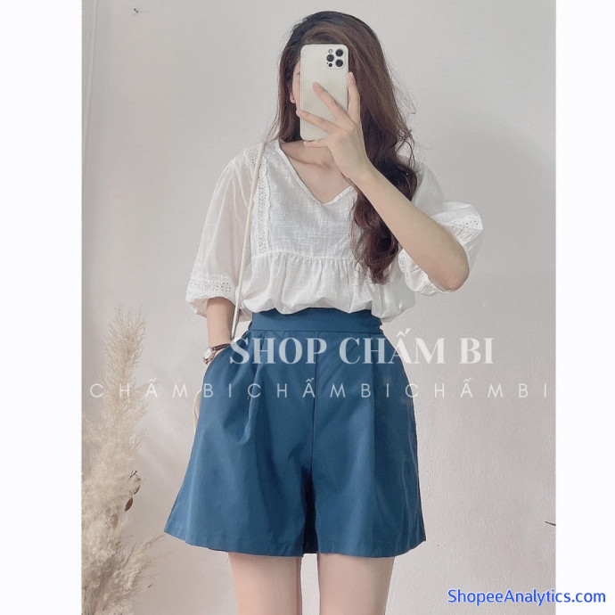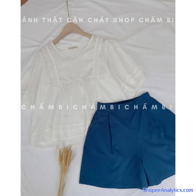 - Set bộ nữ S.060, Set áo babydoll cổ V pha ren họa tiết cùng quần short xanh khi mix cùng một đôi giày thể thao, giày búp bê, boots,... đều cực kì thời trang