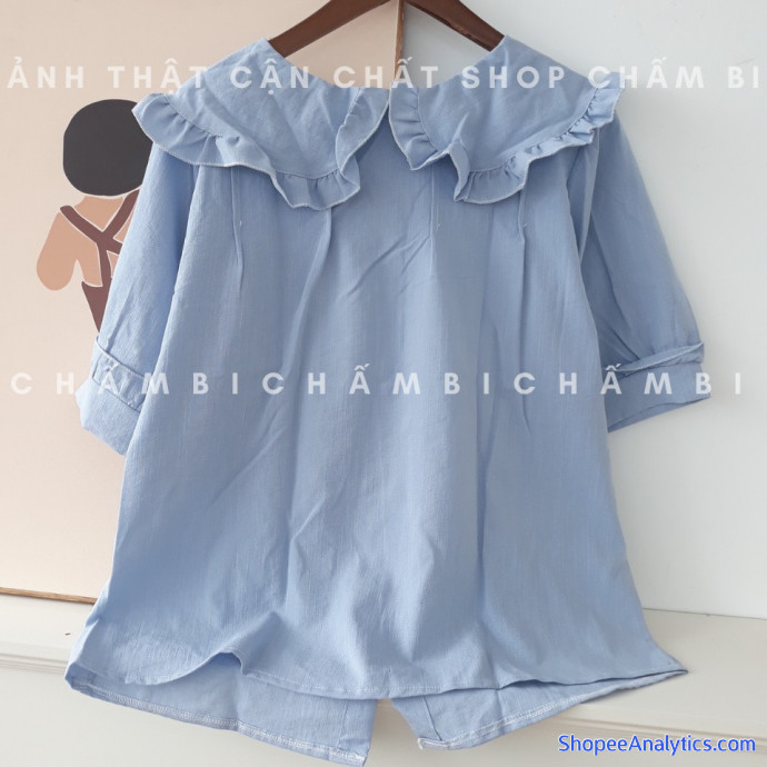 Áo sơ mi Hàn Quốc A.223, áo sơ mi cộc tay cách điệu cổ bèo viền nhún 3 màu cực xinh