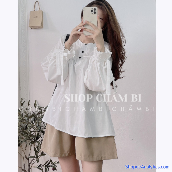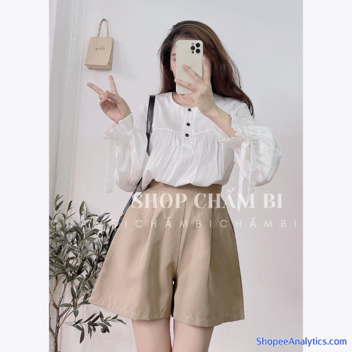 - Set đồ nữ S.061, Áo babydoll dài tay rút dây nơ cách điệu và quần short kaki khi mix cùng một đôi giày thể thao, giày búp bê, boots,... đều cực kì thời trang