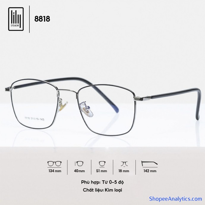 Tổng thể Gọng kính cận nam nữ Lilyeyewear kim loại, mắt vuông, nhiều màu - Y8818 được đánh giá trung bình 4.95/5 điểm dựa vào 1,004 đánh giá qua 1,901 lượt mua hàng (Cập nhập ngày 14/10/2021).