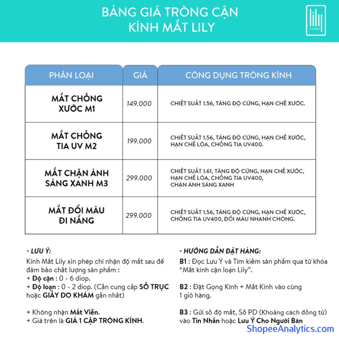 * Kính mắt Lily cam kết 100% sản phẩm là ảnh thật shop tự chụp, quý khách hoàn toàn yên tâm khi mua và sử dụng sản phẩm. Shop nghiêm cấm mọi hành vi sao chép, vi phạm bản quyền hình ảnh.
