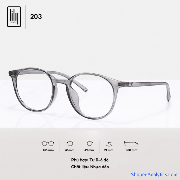 Tổng thể Gọng kính tròn chất liệu nhựa dẻo phụ kiện thời trang nữ Lilyeyewear 203 nhiều màu được đánh giá trung bình 4.93/5 điểm dựa vào 1,529 đánh giá qua 3,013 lượt mua hàng (Cập nhập ngày 14/10/2021).