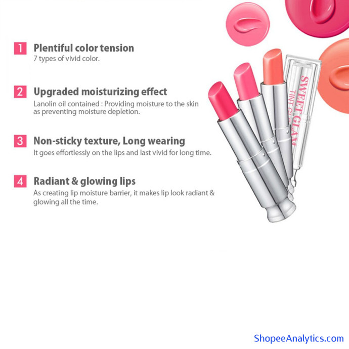 Son dưỡng có màu Secret Key Sweet Glam Tint Glow sử dụng công thức chứa dầu Lanolin được biết đến với khả năng dưỡng ẩm tối ưu, giúp làn môi luôn ẩm mượt, mềm mịn trong nhiều giờ. Màu son tươi sáng, trẻ trung, chất son mỏng nhẹ, không gây cảm giác nặng và bí môi ngay cả khi thoa nhiều lớp. Son giúp tạo hiệu ứng bóng đẹp, cho làn môi căng mọng và quyến rũ hơn.