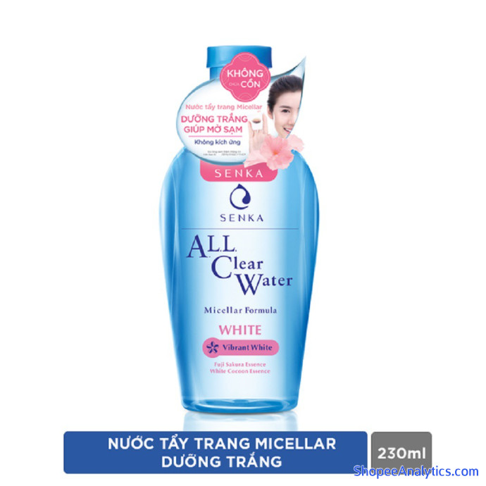 Nước tẩy trang dưỡng trắng Senka All Clear Water Micellar Formula White 230ml không cồn dịu nhẹ cho da giúp làm sạch bụi bẩn, bã nhờn, lớp trang điểm lâu trôi sâu bên trong lỗ chân lông, đồng thời làm mờ vết sạm , dưỡng trắng cho làn da ẩm mịn, sáng rạng rỡ
