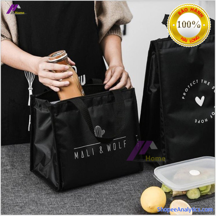 Kích thước túi thấp: Cao 21cm, dài 25cm, rộng 15cm đựng vừa 1 hộp 1000ml và 1 hộp canh, cùng hộp đũa thìa dĩa.