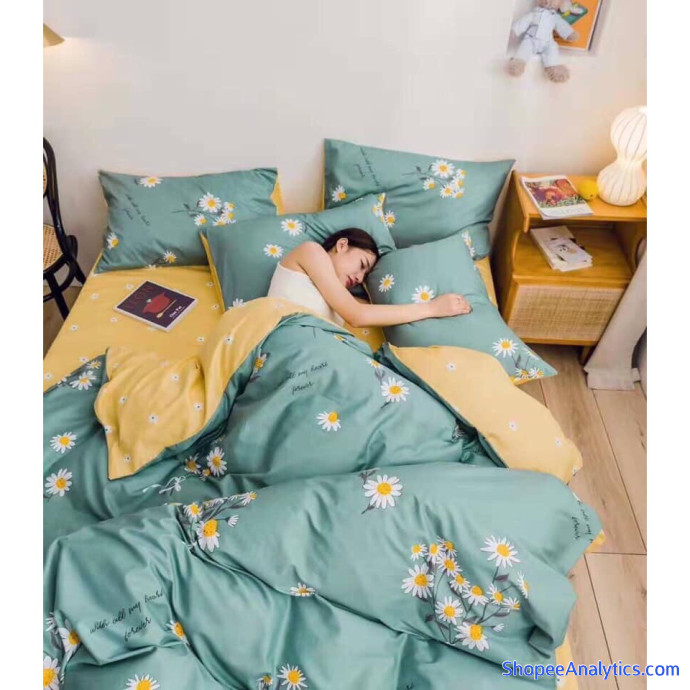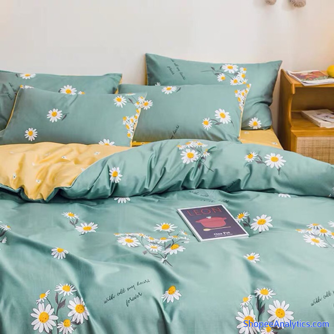 Bộ chăn ga gối cotton poly 4 món họa tiết cúc họa mi phog cách Hàn Quốc