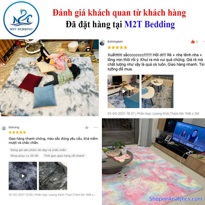 Tổng thể Thảm lông trải sàn M2T Bedding mềm mượt thảm màu loang decor trang trí phòng đủ size được đánh giá trung bình 4.93/5 điểm dựa vào 1,452 đánh giá qua 3,695 lượt mua hàng (Cập nhập ngày 18/10/2021).