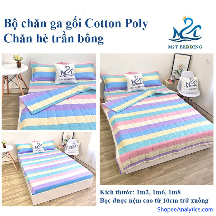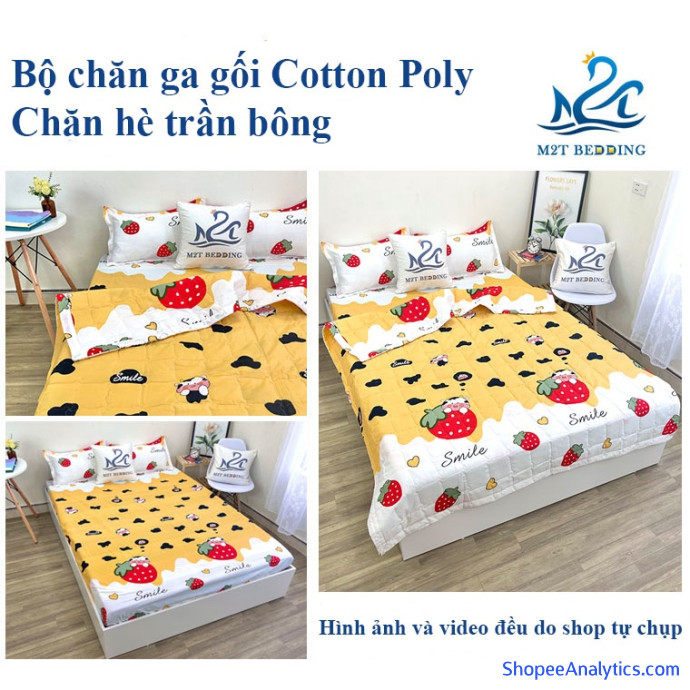 Bộ chăn ga gối hè cotton poly M2T Bedding, chăn hè trần bông họa tiết mền đáng yêu