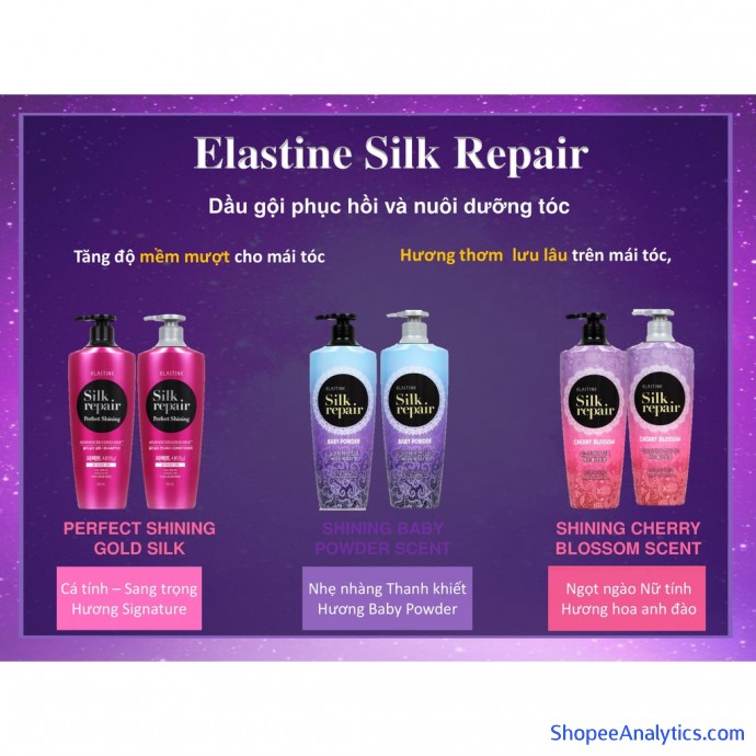 - ELASTINE SILK REPAIR SHINING BABY POWDER SCENT - HƯƠNG EM BÉ (DÂU GỘI và DẦU XẢ)