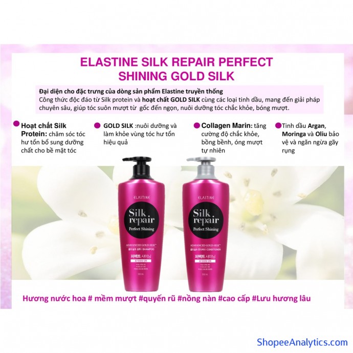 - ELASTINE SILK REPAIR PERFECT SHINING GOLD SILK - TRUYỀN THỐNG (DÂU GỘI và DẦU XẢ)