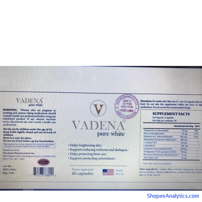 VADENA PURE WHITE- CHỐNG NẮNG, TRẮNG DA, XÓA MỜ RÃNH NHĂN, XUA TAN VẾT NÁM