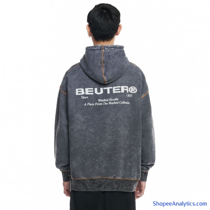 - Về thiết kế: Áo hoodie nam Beuter Rusted Grey Washed Hoodie màu xám, đồ họa in màn hình trên ngực và lưng.