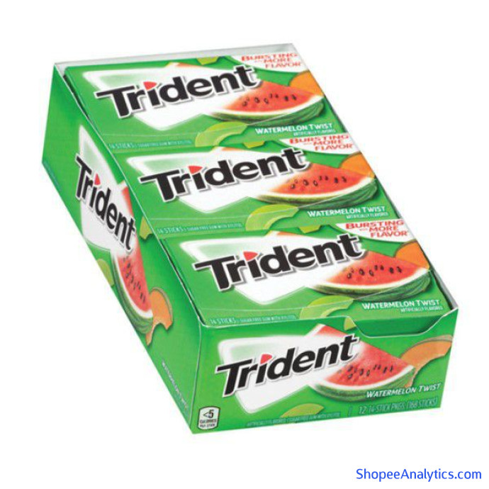Kẹo singum Trident của Mỹ là loại kẹo cao su không đường sản phẩm số 1 của Hoa Kỳ. Nhai kẹo cao su của Mỹ này giúp hơi thở thơm tho, đặc biệt dùng kẹo cao su không đường Trident sau khi ăn/uống, bạn sẽ tránh được các bệnh về răng miệng như: chống sâu răng, loại bỏ thức ăn và trung hòa acid mảng bám. Kẹo cao su của Mỹ Trident rất ngon, viên kẹo mềm dẻo với hương thơm lưu rất lâu. Phù hợp cho bạn mang theo mọi lúc mọi nơi và cũng sẽ là một món quà thú vị cho người thân của bạn.